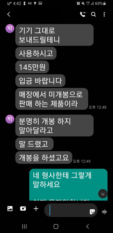 그러면서 아무 맥락 없이 145만원을 오히려 내놓으라는 말을 합니다. 물건은 다시 보낼테니 쓰라면서요.