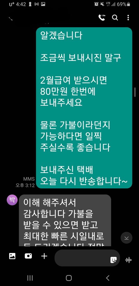 근데또하루이틀뒤에 자기가 1월한달 일을 해서 2월에 돈받아서 줄테니까 사정봐달라고 하더라구요.
