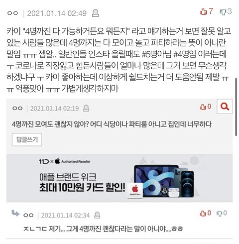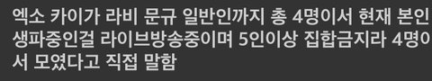 아니 라방 내용 그대로인데 일부 카이팬덤 쉴드 쩐다..청하및 홈파티 거리두기로 욕먹은 연예인들은 뭐냐