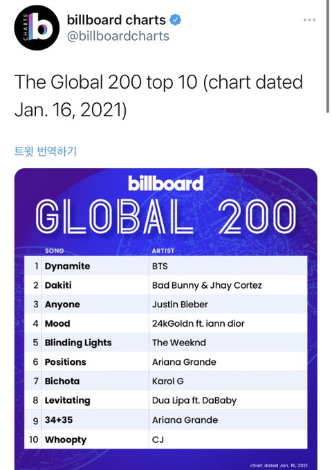 캬 또 빌보드 1위를 찍었지 뭐야~~