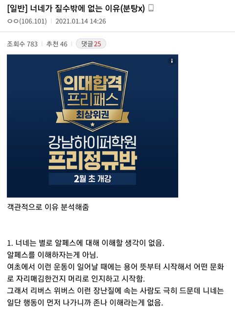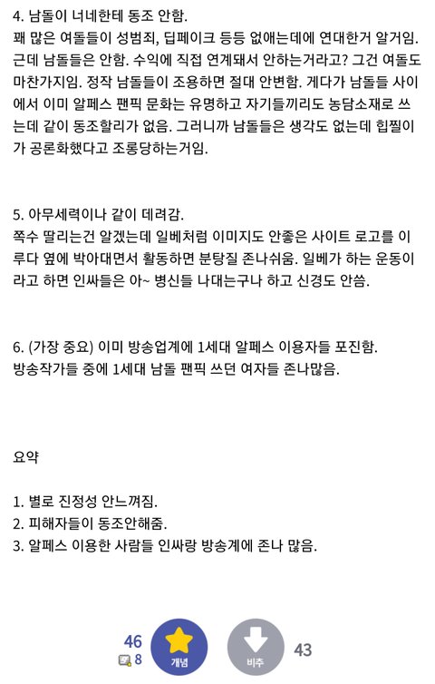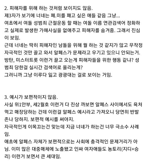 맞말이라 들고 옴 관음하고 분탕질 하려는 애들은 나가라 알페스라는 문화는 돌판 내에서도 이미 반감 가진 사람들 많았는데 이렇게 대응하니까 반발 생기고 싸우는 거지 진짜 아이돌 위해서 한 거라는 걸 인증하고 보여주면 돌판 팬들도 동조하고 그럴 텐데 진짜 안타깝다