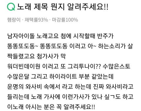 이 정도면 " 누구 노랜데?? " 라는 궁금증이 들겠징..