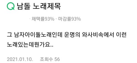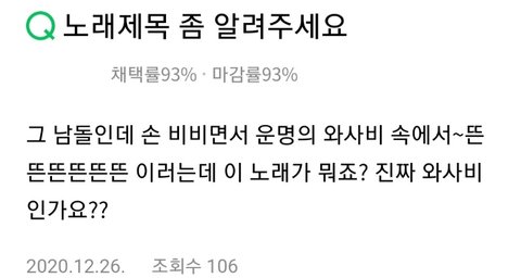 다들 와사비로 들음ㅋㅋㅋㅋㅋㅋㅠ 왜 갑인데는 뭐얔ㅋㅋㅋㅋㅋ +) "왜 갑인데~ 완~" 은 "Wake up in day one" 이었음...