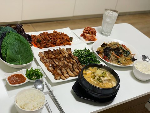제육 양념해둔거 조금 남은거랑 삼겹살있어서 꾸운다음에