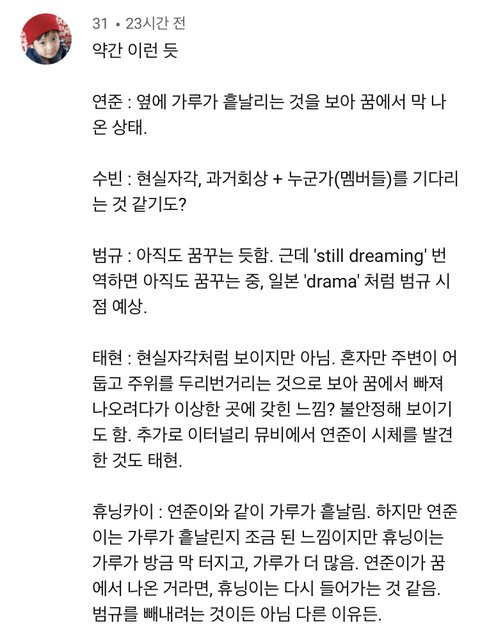 모음 영상에 댓으로 해석한 거 많이 올리오던데 이게 젤 정확한 거 같지 않냐?? 태혀니는 카오스 챕터 들간 것 같구