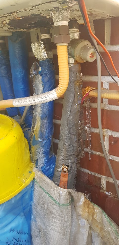 지난 12월 16일에 옥탑으로 출근해보니 보일러 배관이 동파되어 난방이 되지 않았습니다. 보일러실에 가보니 배관에 보온작업이 충분히 되어있지 않고 역시나 배관에 고드름이 얼어있었습니다.