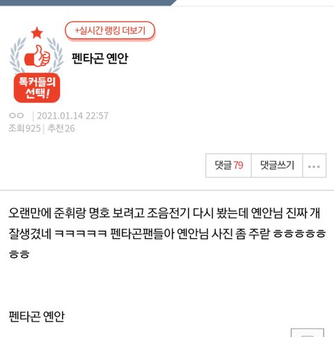 예나니 또 톡선 올랐네