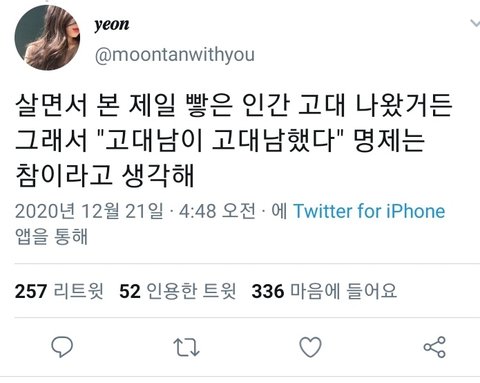 고대 다닌다.. 고대남이 고대남이라고 불리게 된 이유는 과거 이대 축제할 때 어디 여자가 감히 이런 거 하냐고 처들어가서 성폭행하고 폭행하고 이런 것도 있고, 대학 가보면 알겠지만 과잠이라는 게 새내기 때 4월에 받으면 잠깐 입고 그 다음엔 잘 못 입음 약간 쪽팔려서ㅋㅋ 뭔가 대학 앞에서 자취하는 게 아니면 입기 쉽지 않음 통학하며 그걸 입는다는게 쉽지 않은데 고대 남학우들이 유독. 찜통 더위에도 과잠을 입고 학교와 전혀 상관 없는 장소(예를 들면 여행지라든지, 외국이라든지)에서도 자랑하듯 과잠을 입어서 그럼ㅋㅋ 이게 뭐가 문젠데? 싶겠지만 대학 가보면 알게 될 거야~