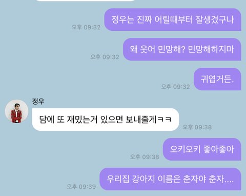 봤을까 봤을까!!!! 정우야 우리집 강아지 이름 춘자다 춘자 기억해줘