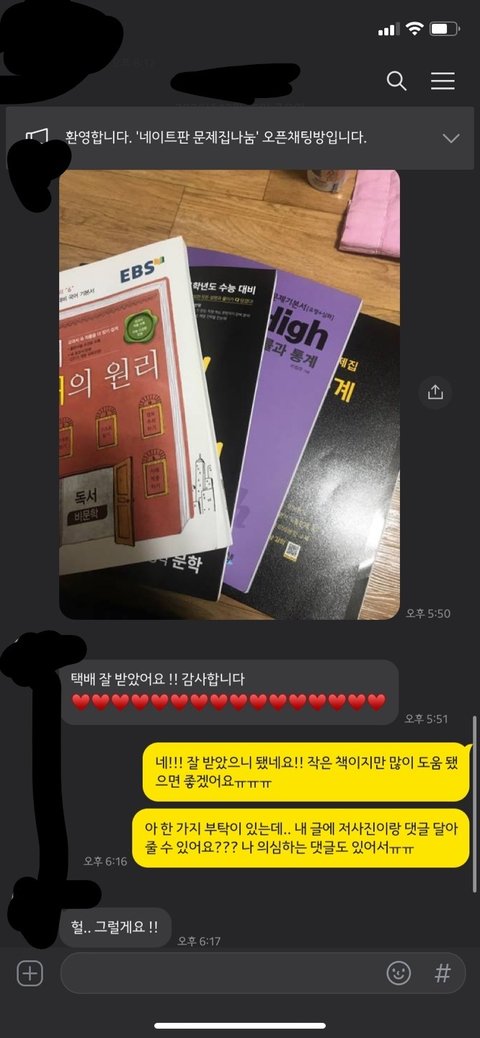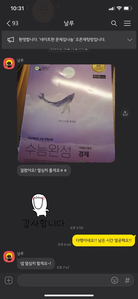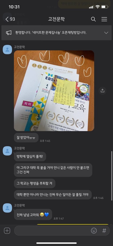 그래서 정말 힘든 친구들만 옾챗 '네이트판 문제집나눔' 들어와주길 바라!!