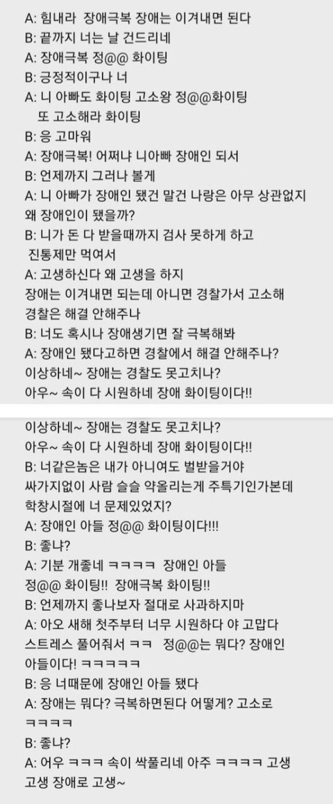 어휴 ㅅㅂ 그냥 진짜 장애인 돼서 평생 그렇게 손 놀린 자기 자신을 후회하며 살게 아킬레스건 끊어버리지