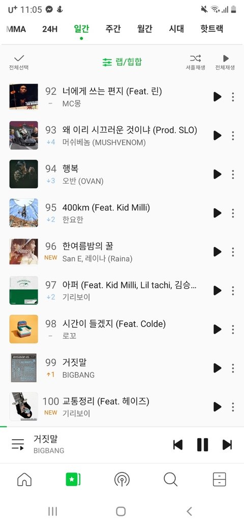 뜬금포 랩부문 차트인