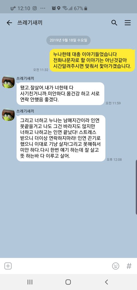기억이안나 라고하더라고요ㅎㅎ;; 진짜그런취급당하고직원들앞에서 개쪽을당해도 암말못하고 승질한번못낸게 매형이 가정폭력이 심해서 누나한테 해코지할까봐 아무것도 아무말도못했습니다..ㅎㅎ 그렇게참았는데 누나가 그래버리니 ㅎㅎ진짜 뻥지더라고요...ㅎ나중에알았는데 그통화내용을 누나가 녹음중이었답니다 그래서혹시나 나중에증거가될까 기억안난다 그런돈준다고한적없다 라고한것같습니다ㅎㅎ..결국 저희어머니께서 찿아가 주기로한걸왜안주냐 준다고한거는줘라라고했더니ㅎㅎ 말싹뚝끊고