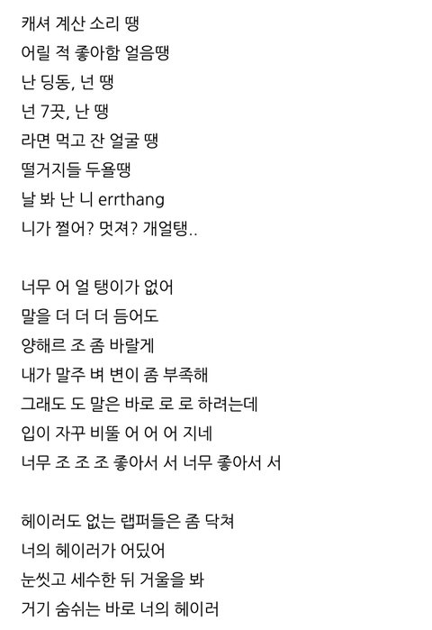 평소에 아이돌래퍼 프레임 씌워져서 무시당하던 아이돌들도 많았고 그래서 수준 높은? 가사들 보고싶어