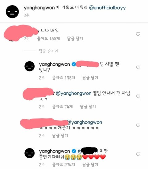 양홍원 인스타 보면 댓글 개쎈데 다 팬임 ㅆㅂ ㅋㅋㅋㅋㅋㅋㅋㅋㅋㅋㅋ 팬들 양홍원 ㅈㄴ 패