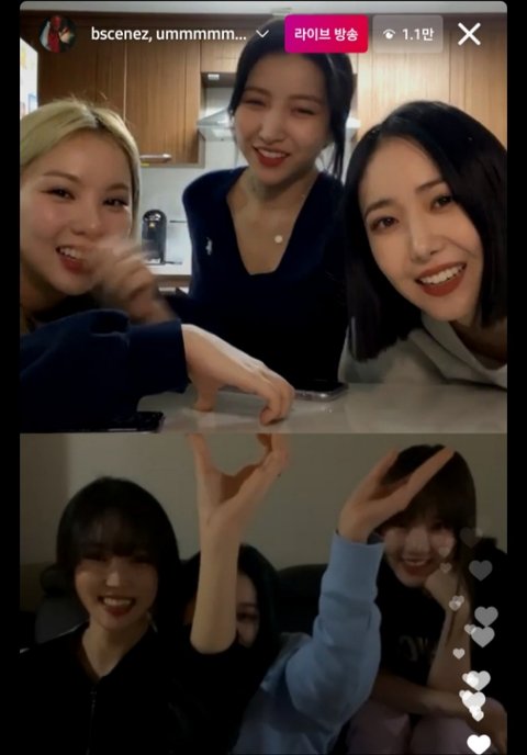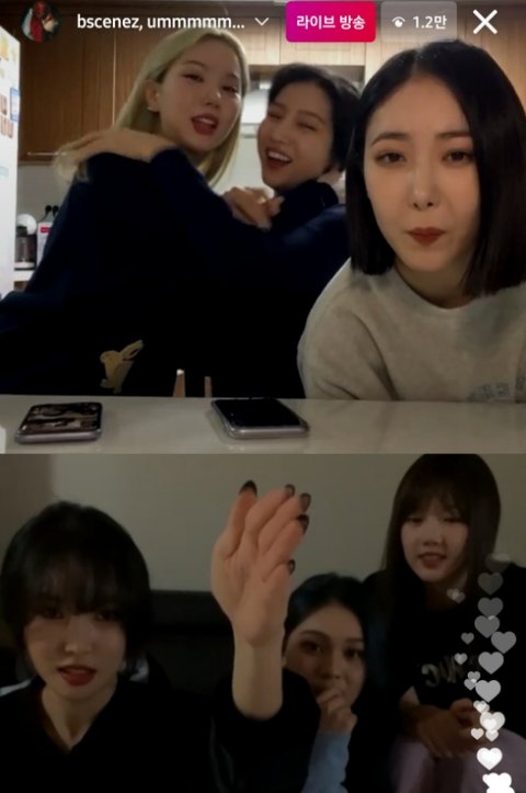 은 여자친구. 6인조 그룹이라 5인이상 집합 금지라며 윗층과 아래층이 함께 인스타 라이브를 진행하는데...