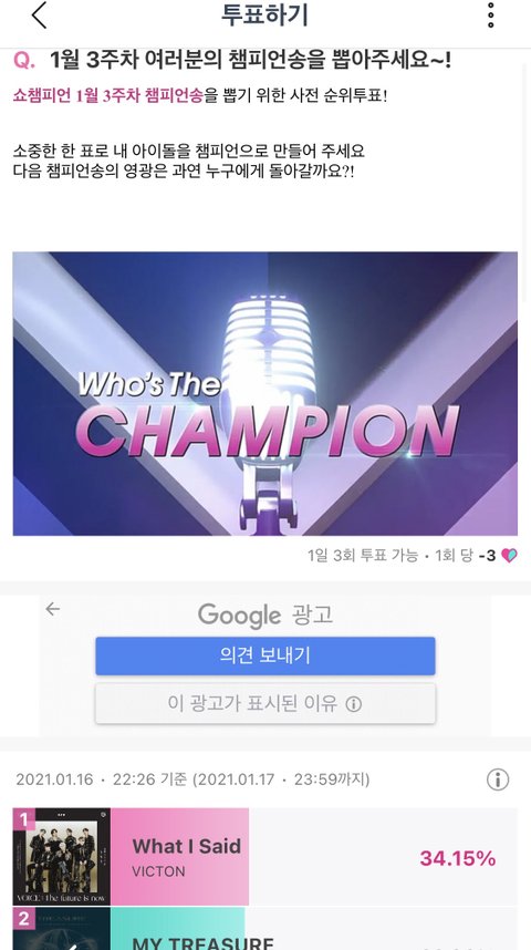 1월 3주차 여러분의 챔피언송을 뽑아주세요~!