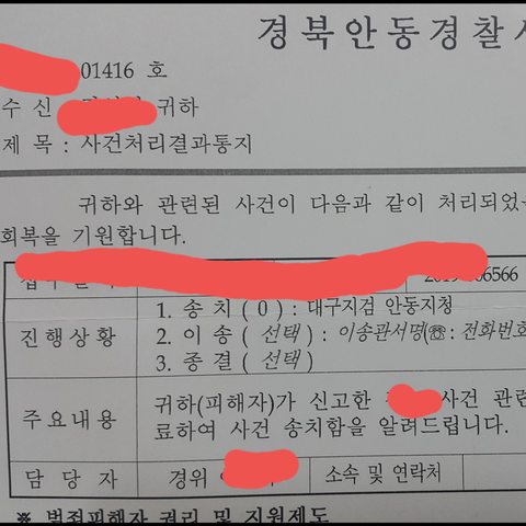 형사고소건으로 대구검찰청으로 넘어간 사안임.
