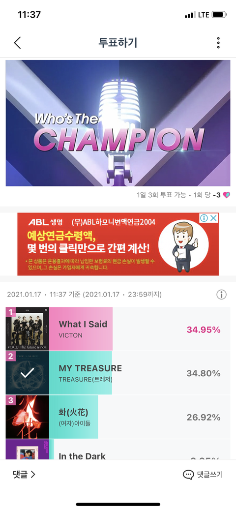 1월 3주차 여러분의 챔피언송을 뽑아주세요~!