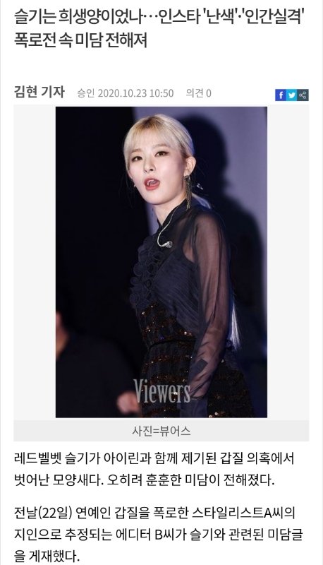 아이린·슬기 갑질? 에디터 '폭로글' 파장