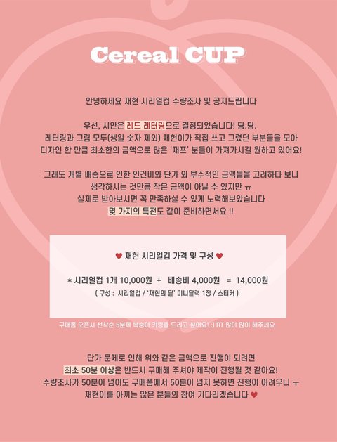 ㅌㅇㅌ 안 하는 사람들이나 재현이 시리얼컵 진행하는지 모르는 사람들도 알았으면 해서 여기에 글 올려