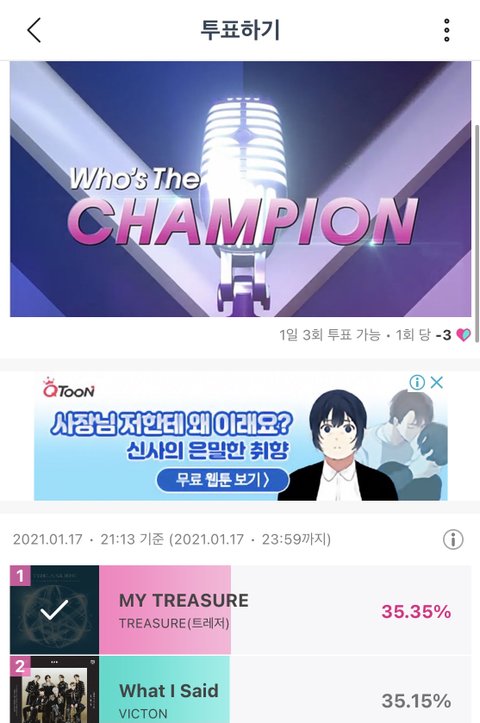 1월 3주차 여러분의 챔피언송을 뽑아주세요~!