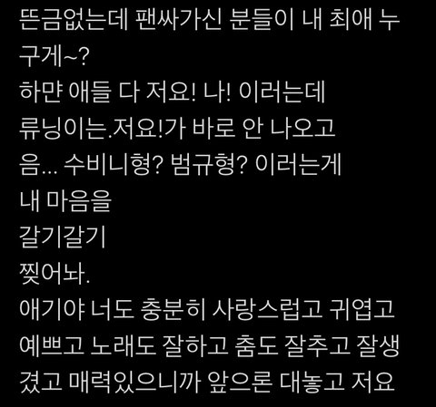 휴닝이 최차애 아닌데도 맘아파서 심장이 찢어지는거가틈...얘들아 너희가 만약에 팬싸를 간다면 휴닝이한테 미친듯이 너가 최애라고 외치고좀 와조라....울 휴닝 아 ㅠㅠㅠㅠ
