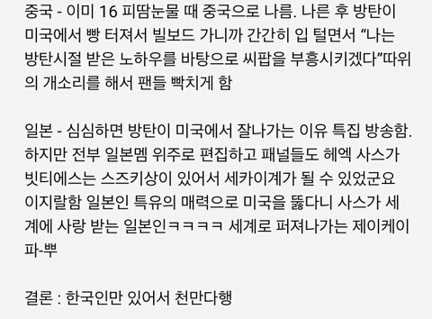 방탄은 걍 어나더 레벨같은데