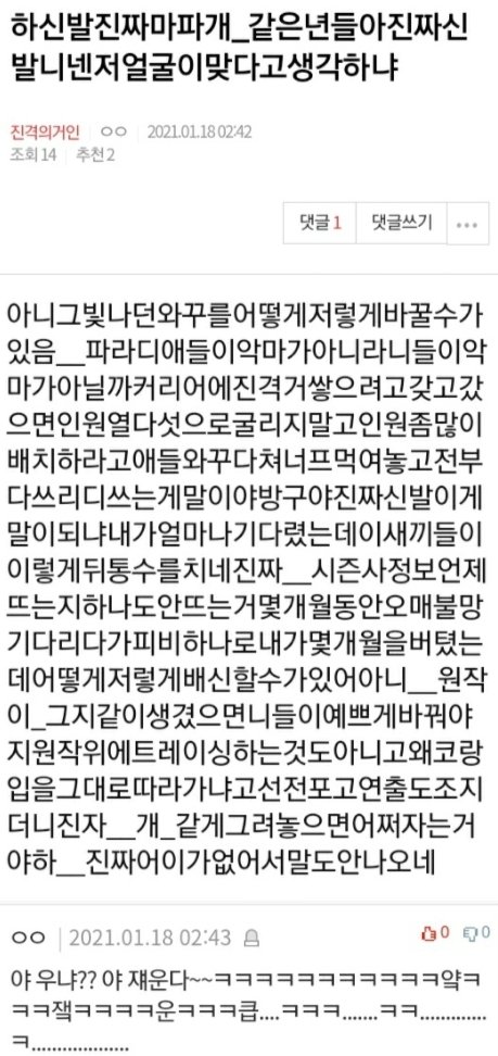 맨날 부타야로 부타야로 거리더니 지가 부타야로가 돼버리면 어떡해