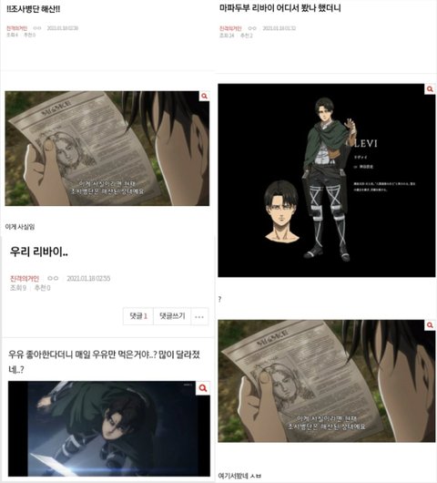 리바이보고 놀라서 팬톡 처음으로 들어옴
