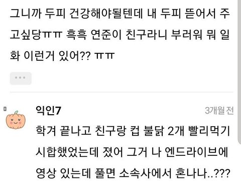 +과거는 아닌데 우리 비대면 수업할때 휴닝이랑 범규 부정수강떳었다함 ㅋㅋㅋㅋㅋㅋㅋㅋ