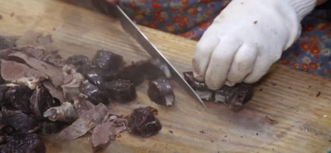 열심히 순대 썰고 계시는 35년 경력 순대집 사장님