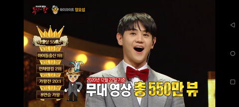 8연승 가왕, 아이돌 출신 1위, 전체 랭킹 2위라는 대기록을 새움ㅇㅇ