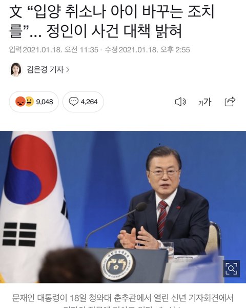 문 대통령 왈 “입양 부모의 경우 마음이 변할 수 있기에 일정 기간 안에 취소를 한다든지, 입양아와 맞지 않다면 입양아를 바꿀 수 있도록 하겠다.”