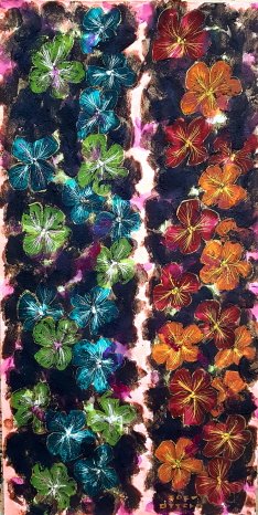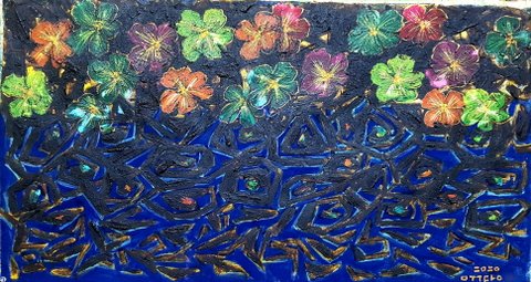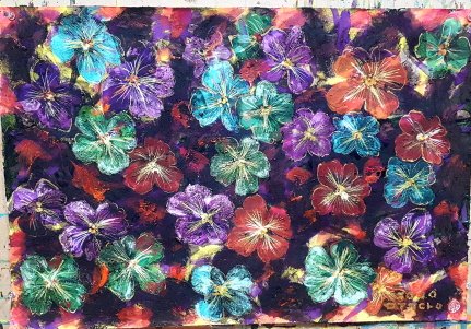 금강경 15 지경공덕분[持經功德分] - 경을 지닌 공덕을 읽다가 부처님 설법에 수많은 천신과 아수라 그리고 중생들이 갖가지 꽃을 뿌린다는 생각으로 그린 작품 입니다..