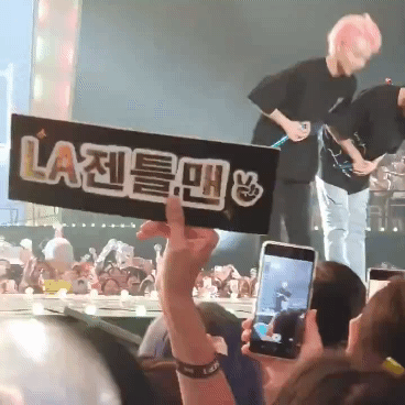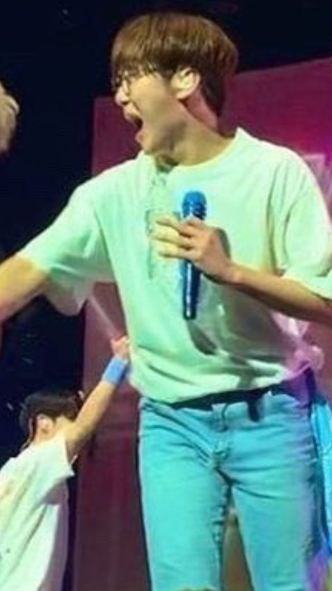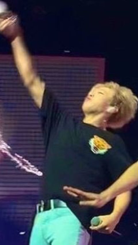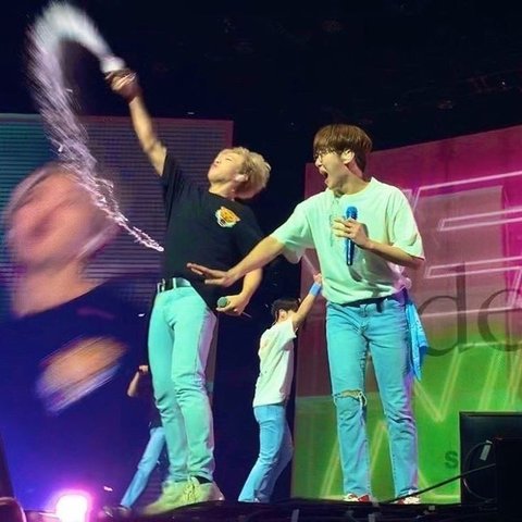 콘서트 중 물 뿌리다 물병 놓쳐서 팬한테 날아가버리기^!^