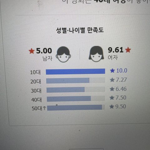 아이엠우먼이라는 영화 평점임ㅋㅋㅋㅋㅋㅋ 성별 만족도 차이나는거봐... 평점에도 ‘우먼 우먼 우먼 질린다’, ‘또 페미야?’ 이런 평점 개많고ㅇㅇ 문은주 감독이라고 한국인 감독님이 할리우드에서 제작한 영환데 난 관람했지만 그냥 그 시대 여성들의 이야기를 담은 내용인데 왜 저렇게 반응할까? 여성의 이야기를 만들면 왜 거부감을 표출하며 폭력적으로 비난하는 거임? 우먼 우먼 우먼 질린다고 한 사람은 아이언맨, 스파이더맨, 킹스맨... 이런 영화는 안 질렸나?