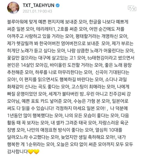 모아들한테 받은 편지 하나 하나 다 읽고 위버스에 하나 하나 다 언급해준거 봐ㅜ강태현 스윗해