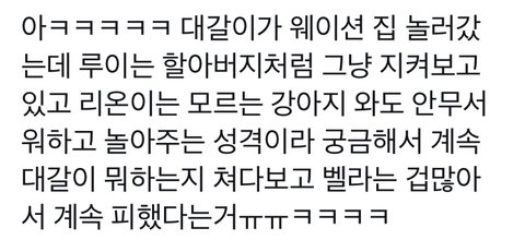 아니 근데 ㄷh갈이는 너무 천러고 벨라는 너무 더쥔이야ㅋㅋㅋㅋㅋㅋㅋㅋ
