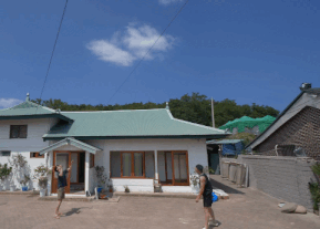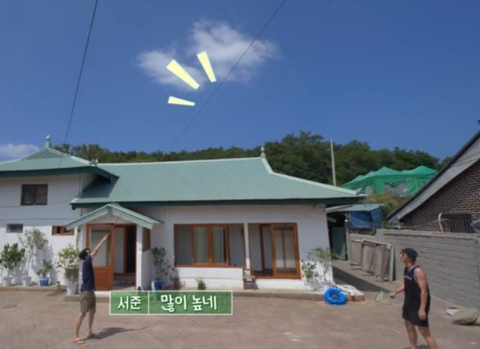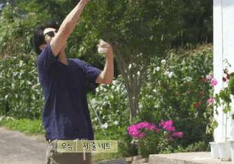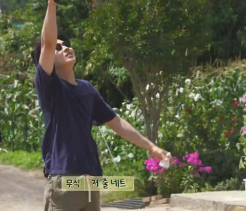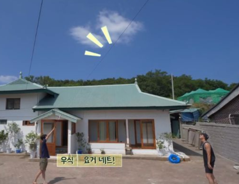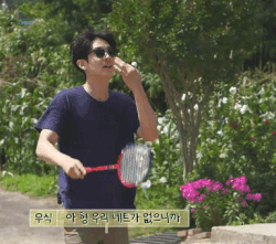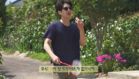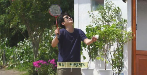 마당에서 배드민턴 한 판 중인 최우식 박서준
