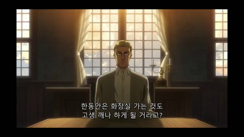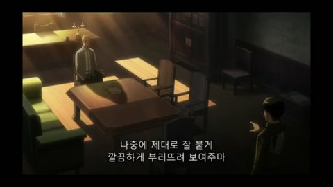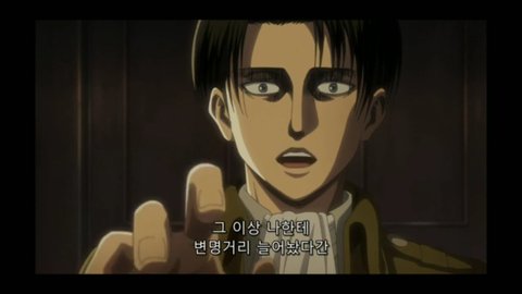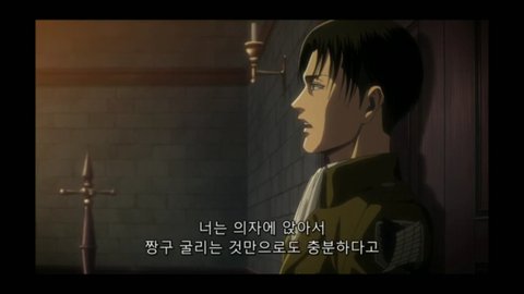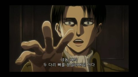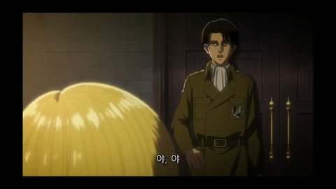 협박의 언어와 금방이라도 다리를 아작낼듯한 험악한 표정 때문에 믿을수없겠지만 리바이는 명백히 엘빈에 대한 사랑과 염려를 표하고 있다.
