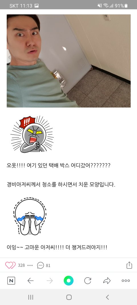 1층 길목에 택배박스 쌓아놓지를 말던가 잘못했다는 생각은 없고 치워줘서 고맙다는게 정상임? 다 자업자득이고 자기 행동의 결과인데 연에인이라 마녀사냥한다고 피의쉴드치는 시녀들도 문제임