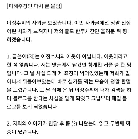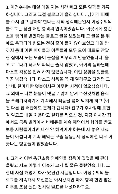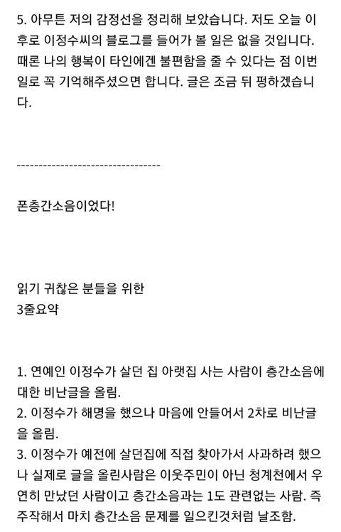 저분이 아랫층이 아니란것뿐 이정수 평소 행실은 팩트임 블로그글에 일거수일투족 다 올리는데 정상인이라면 어이없는 상황 한두개가 아님