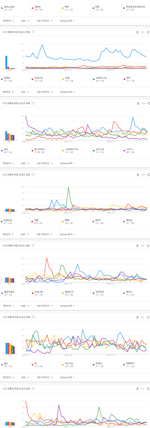 2020년 국내 유튜브에서 가장 많이 검색된 남자아이돌 TOP30