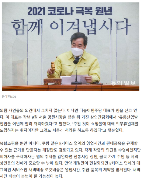다음달에 국회에서 새벽배송 로켓배송 법으로 금지하고 스타필드 롯데몰도