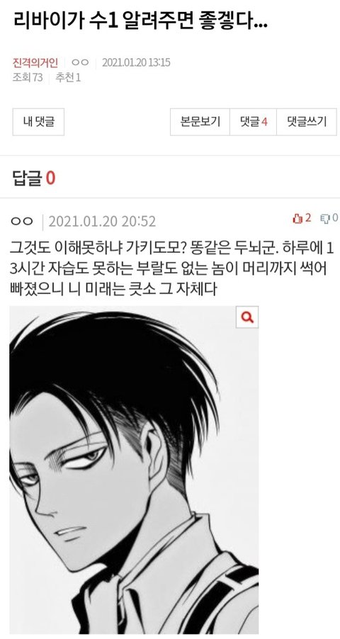 얘들아 팬톡에 리바이 왔었나봐!!!!