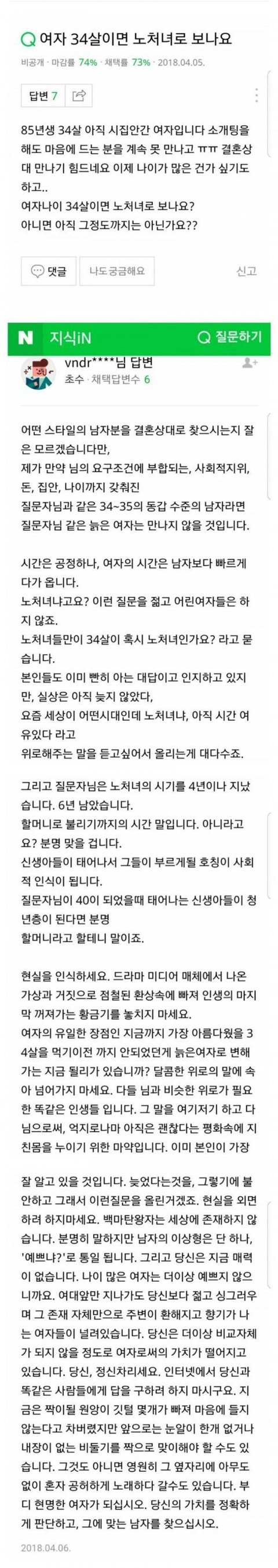 저 글은 남자가 봐도 진짜 매섭다...말로 사람죽일 기세...근데 저 말이 현실이라는 불편한 진실. 그래서 요즘에 대부분의 시기 놓친 여자들이 아예 포기하고 혼자 사는듯