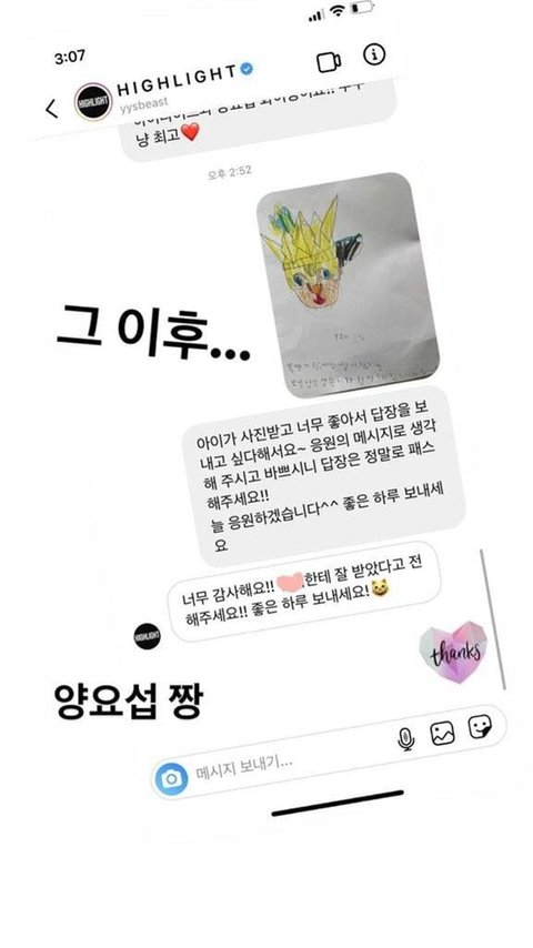 거기에 또 그림 잘받았다고 전해달라하는 양요섭