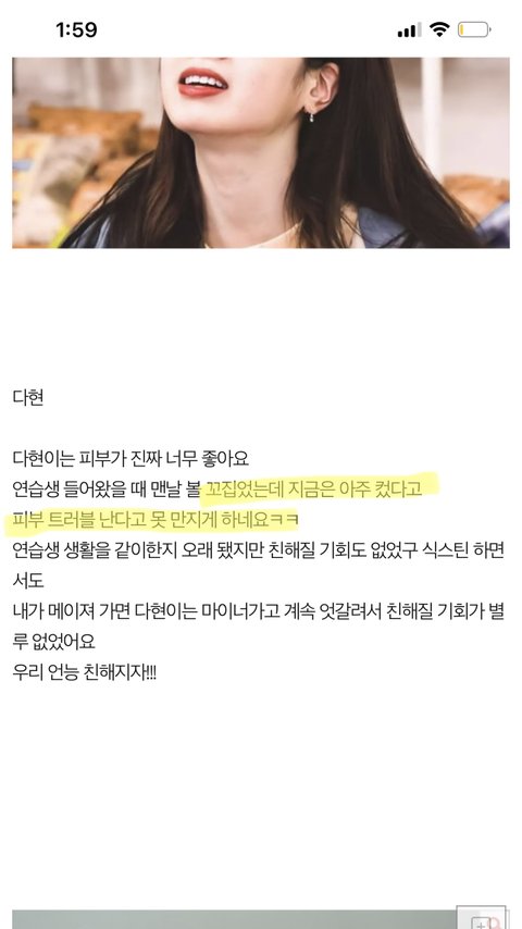 다현이는 피부가 진짜 너무 좋아요