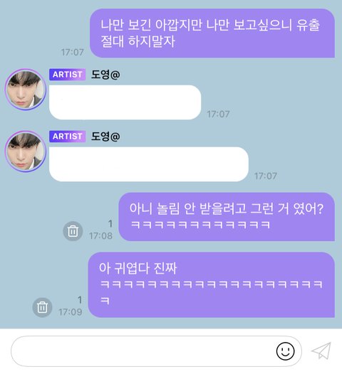 동영상 오고 겁나 웃었는데 도영이가 유출하지 말라 해서 심각했는데 놀림 받을까봐 그런거래 ㅋㅋㅋㅋㅋㅋ 아 진짜 너무 귀여움 ㅜㅜㅜㅜㅜ